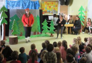 Lutkovna skupina strokovnih delavk iz enote Mavrice je pripravila dramatizacijo Pod medvedovim dežnikom.