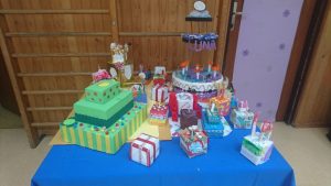 V enoti Luna pa so iz ne-strukturiranih materialov izdelovali torte. V skupnem prostoru so oblikovali razstavo tort, ob njih pa vrtcu prepevali rojstno dnevne pesmice.