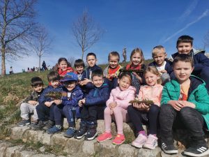 Gregorčke smo izdelali tudi mi. Uporabili smo mah, veje, kamne, školjke, rafijo, storže… Namesto svečke smo plamen narisali kar na kamenček. Tako res nismo smetili narave, kot se spodobi za prave eko face.