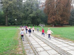 Tekli smo v parku, ob Savinji ali na velikem igrišču vrtca, kjer smo pripravili pravo atletsko progo, po kateri smo se skozi dopoldne razvrstile vse skupine.