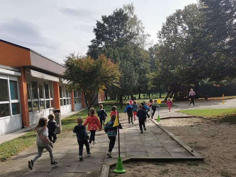Otroci so se pred tekom ogreli in razgibali ter komaj čakali, da se podajo na start proge. Letos teka niso spremljali navijači, a smo kljub temu vse skupine dihale skupaj v eno in se spodbujale od daleč. Vsi za enega – eden za vse. Pozitivni odnos do športa je danes odmeval pri nas in tako bo tudi v prihodnje.