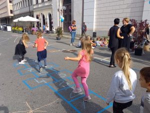 K sodelovanju pa nas je kot vrtec, ki je na tem področju že aktiven, povabila tudi Mestna občina Celje. Oddelki najstarejših otrok so bili vabljeni v mesto na Prešernov trg k pripravljenim aktivnostim za otroke. Ogledali so si zunanjost in notranjost Celebusa, razstavo vozil kot so bili nekoč, pripomočke za varno vožnjo, se igrali talne igre (ristanc, …). Poleg ostalih vsebin o prometu so spoznali tudi delo policistov ter imeli možnost od bližje spoznati in opazovati policijske konje.