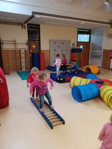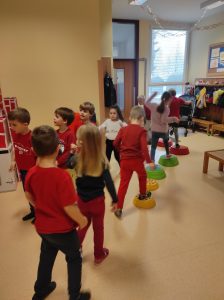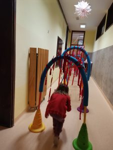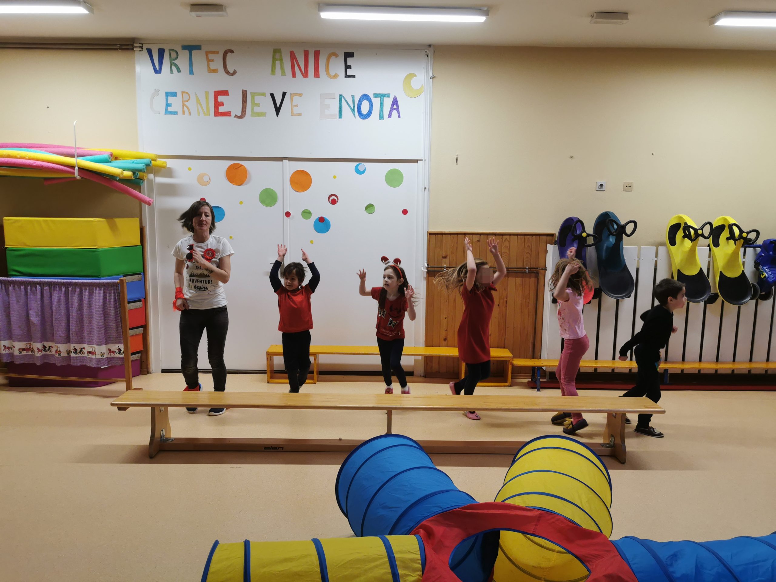 Bil je torek, ki smo ga spremenili v malo drugačnega, polnega izzivov in presenečenj. Ker si vsi želimo zdravo živeti in biti zdravi, je bilo to dopoldne športno. Iz enega konca enote Luna na drugi konec, pa tudi vmes, so se vile športne preizkušnje in poligoni, ki so otroke in starše presenetili že navsezgodaj. Otroci so se s strokovnimi delavkami preizkušali na čutnih poteh, plazili po tunelih, se vozili s poganjalčki med ovirami, hodili po vrvi, lovili ravnotežje na hoduljah, plezali čez ovire in jih preskakovali… Najpomembnejše pa je bilo to, da so se neskončno zabavali in veliko smejali. Upoštevali smo vse smernice, ki nam jih narekujejo trenutni ukrepi.