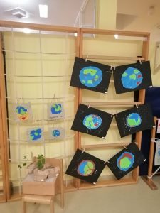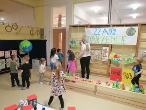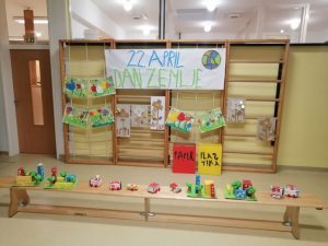 Ob koncu tedna smo DAN ZEMLJE obeležili z razstavo izdelkov v skupnem prostoru naše enote, katero smo si ogledali skupaj z otroki, v popoldanskem času pa je bila na ogled tudi za starše.