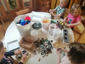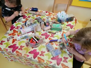 V tednu od 19. do 22. aprila 2022 smo v okviru EKO vrtca izvedli TEDEN BREZ IGRAČ. Temeljil je na ustvarjalni igri otrok in ekološko naravnanih dejavnostih, igrače pa smo nadomestili z naravnim in nekonstruiranim materialom (les, škatle, zamaški, naravni plodovi gozda, kartoni itd).
